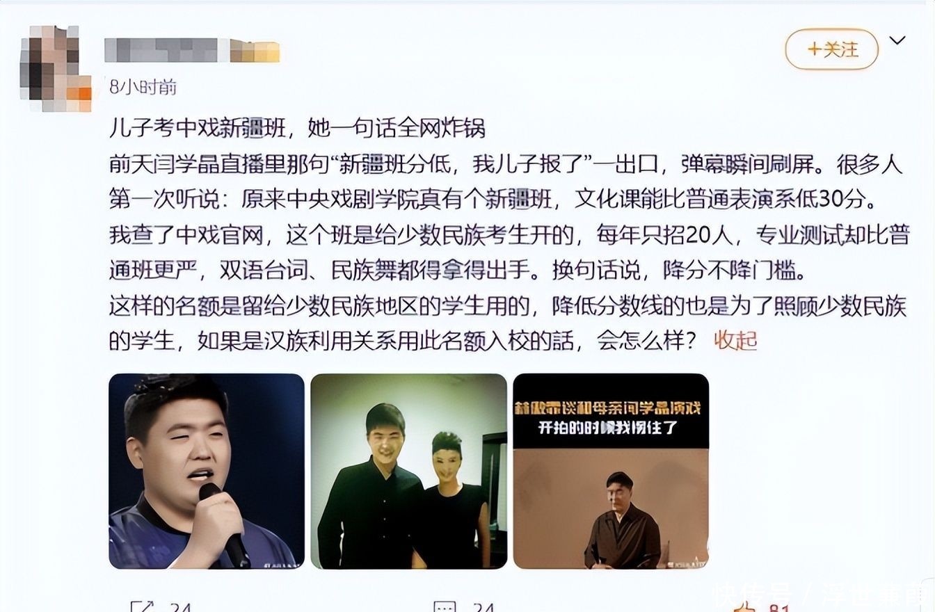 7. 近期有网友曝光,闫学晶曾在直播中亲口透露儿子林傲霏通过“特殊渠道”进入中央戏剧学院新疆班就读。